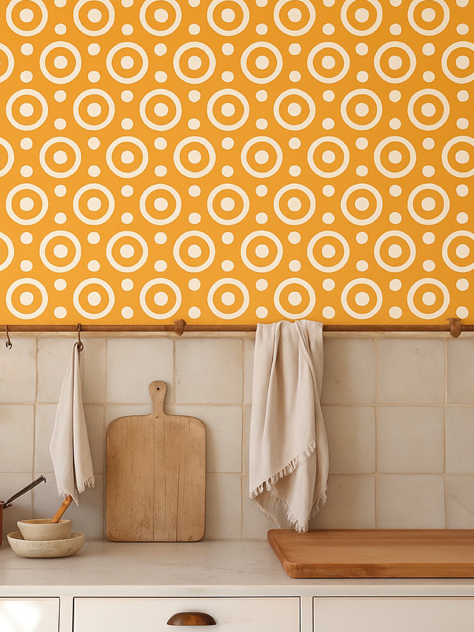 Decora tus paredes con el papel mural “Redondela”, impreso en vinilo de alta calidad, ideal para transformar cualquier espacio con estilo de patrones.